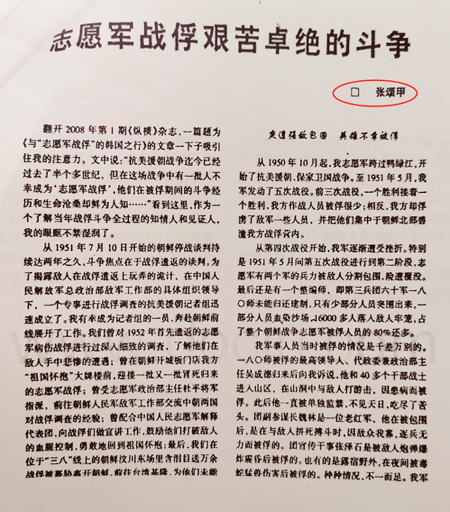 1953年5月至1954年1月期间,张颂甲同志由大公报临时调到军委总政治部记者组,赴朝鲜工作。抗美援朝后期,张颂甲同志被总政治部敌工部调到朝鲜前线,作战俘情况的调查。历时8个月,张颂甲同志作为领导小组成员,写了多篇调查报告。