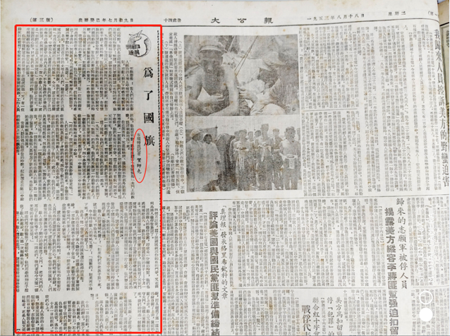 1953年8月18日,《大公报》三版《为了国旗》,署名本报特派记者贺师尧。