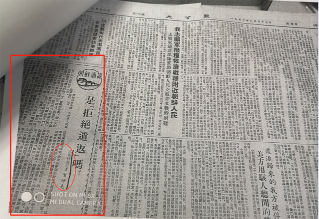 1953年8月27日,《大公报》四版《是“拒绝遣返”吗?》,署名本报特派记者贺师尧。