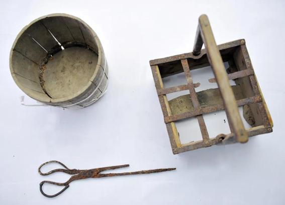 徐解秀老人当年与红军女战士共同用过的木盆、火钳、烤火盆等物品。