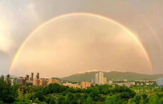 16日,汝城出现漂亮的彩虹景观。