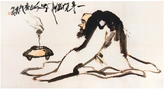 潘天寿 秃头僧图 94.8cm×172cm 纸本设色 1922年 潘天寿纪念馆藏